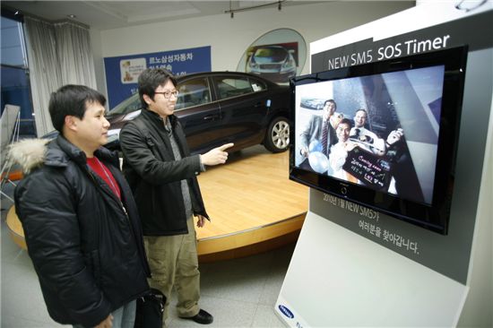[아시아경제 손현진 기자]르노삼성자동차가 오는 18일 뉴SM5 출시를 앞두고 5일 임직원들의 성공 염원을 담은 뉴SM5 SOS(Start of Sales) 타이머를 서울 본사 및 중앙연구소, 부산 공장 등 사내 주요 장소에 설치하는 발대식을 가졌다. SOS타이머는 뉴SM5 개발에 참여한 많은 임직원들이 출시 일까지 직접 카운트다운 하는 모습을 사진으로 찍어 보여준다.손현진 기자 everwhite@asiae.co.kr<ⓒ세계를 보는 창 경제를 보는 눈, 아시아경제(www.asiae.co.kr) 무단전재 배포금지>