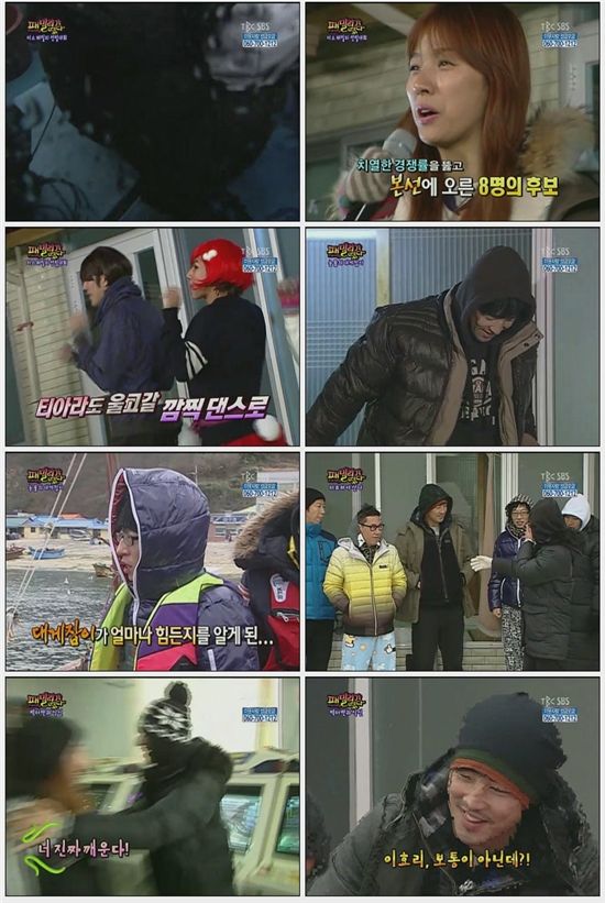 [아시아경제 윤태희 기자]'패떴'의 남자 멤버들이 여장을 하고 아이돌 댄스에 도전했다.10일 오후 방송된 SBS '패밀리가 떴다(이하 패떴)'에서는 지난주 방송분에 이어서 게스트 김성수, 조한선이 참여한 가운데 새벽일을 놓고 팀 대결을 펼쳤다.이날 새벽일 대결을 위해서는 '2010 미스패밀리 선발대회'가 진행됐다. 심사위원 이효리를 기준으로 대성, 윤종신, 김수로, 조한선이 한 팀을, 김종국, 유재석, 박해진, 김성수가 나머지 팀으로 나눠, 지는 팀이 대게 잡이에 나서게 되는 것.대성 팀은 티아라의 '보핍보핍'에 도전했으며, 김종국 팀은 2PM의 '하트비트'에 각각 도전했다.이들은 각자 뮤직비디오를 보며 아이돌 댄스 연구에 여념이 없었다. 안무를 마친 두 팀은 '미스패밀리 선발대회'답게 화장을 하고 스커트를 입는 등 여장을 하고 나섰다. 특히 멤버들이 여장한 모습을 압권이었다. 나름 열심히 꾸미긴 했지만 어색하기 그지없었다. 유일하게 박해진만 완벽한 여장으로 멤버들을 비롯한 이효리의 눈길을 끌었다.이어 두 팀은 각각 티아라의 '보핍보핍'과 2PM의 '하트비트'를 '패떴' 멤버들만의 개성 넘치는 안무로 소화해냈다.대성 팀은 티아라의 특징에 맞게 귀엽고 깜찍한 안무를 선보였고, 종국 팀은 2PM의 카리스마 넘치는 모습을 담은 강한 여성들로 매력발산에 나섰다.한편 이날 새벽일은 2PM의 안무를 선택한 종국 팀으로 확정돼 대게 잡이에 나섰지만 날씨가 좋지 못해 뱃길을 돌려야만 했다.윤태희 기자 th20022@asiae.co.kr<ⓒ아시아경제 & 스투닷컴(stoo.com)이 만드는 온오프라인 연예뉴스>