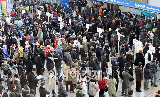 [아시아경제 이재문 기자] 설 기차표 예매가 시작된 13일 오전 서울역 대합실에서 시민들이 고향으로 가는 차표를 사려고 길게 줄을 서며 차례를 기다리고 있다.이재문 기자 moon@asiae.co.kr<ⓒ세계를 보는 창 경제를 보는 눈, 아시아경제(www.asiae.co.kr) 무단전재 배포금지>