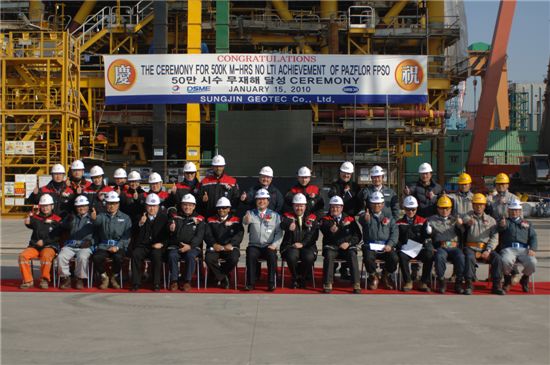 [아시아경제 오현길 기자]성진지오텍의 FPSO 사업장이 프랑스 토탈사가 인정한 무재해 생산 현장으로 인정 받았다.에너지전문 중공업 성진지오텍(대표 신언수)은 ‘파즈플로(Pazflor) FPSO 프로젝트' 제조현장이 무재해 50만 시간을 돌파해 프랑스 '토탈' 사로부터 감사패를 수상했다고 15일 밝혔다.‘무사고·무재해 50만 시간’은 현장 근로자들의 하루 8시간 근무를 기준으로, 지난해 5월부터 9개월 동안 한 건의 안전사고도 발생하지 않았다는 의미이다. 성진지오텍 관계자는 “까다로운 안전요건으로 정평이 난 '토탈' 과 같은 선주사가 참여하고 있는 '파즈플로(Pazflor) FPSO프로젝트' 에서 무사고 50만 시간 달성은 의미가 매우 크다"며 "이는 일하기 좋고, 안전한 직장 만들기를 위해 취임이래 'GWP((Great Work Place)' 모토를 제창하고 실천한 신언수 대표의 힘이 크다" 고 전했다.오현길 기자 ohk0414@asiae.co.kr<ⓒ세계를 보는 창 경제를 보는 눈, 아시아경제(www.asiae.co.kr) 무단전재 배포금지>