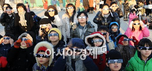 [아시아경제 이재문 기자]부분일식이 전국에서 관측된 가운데 15일 오후 서울 종로 서울과학관에서 어린이들과 학부모가 일식관측키트를 쓰고 우주쇼를 관람하고 있다. 이재문 기자 moon@asiae.co.kr<ⓒ세계를 보는 창 경제를 보는 눈, 아시아경제(www.asiae.co.kr) 무단전재 배포금지>