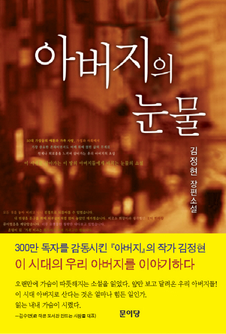 [아시아경제 강승훈 기자]아버지의 눈물김정현 지음/ 문이당 펴냄/ 1만1000원 1996년 가정과 사회로부터 설 자리를 잃어버린 아버지의 모습을 감동적으로 그려 낸 소설 '아버지'. 이 책의 저자 김정현이 장편소설 '아버지의 눈물'로 우리 곁에 돌아왔다. '아버지'는 평범한 가장 한정수가 췌장암 선고를 받은 후 자신의 주변을 정리하는 내용을 담담하게 그려냈다. 아버지의 죽음을 통해 가족의 진정한 의미를 되새겨보게 만들었던 소설. 이 책은 출간 당시 선풍적인 인기를 모으며 최단기간 내 밀리언셀레에 등극하며 ‘아버지 신드롬’을 불러일으키기도 했다.김정현 작가는 '아버지의 눈물'을 통해 또 한번 부성애를 자극하고 있다.'아버지의 눈물'은 윗세대들에게는 억압받고 아랫세대들에게는 무한정 베풀기만을 강요당하는 50대 가장들의 애환을 담아냈다. 가정과 사회에서 가장 중요한 존재이면서도 어깨 위에 얹힌 삶의 무게로 언제나 외로움을 느끼며 살아가는 우리 아버지들의 모습을 그리고 있다.이 소설의 주인공은 한 가정의 가장으로서 온전히 의무를 다해야 한다는 강박감과 책임감에 짓눌려, 스스로 고립되어 가족과의 소통 부재로 진정한 가족의 소중함을 놓치고 만다. 인생의 뚜렷한 목표를 갖지 못하고 부표처럼 떠돌며 가정과 사회로부터 설 자리를 잃어버린 이 시대 가장의 자기반성과 성찰을 통해 인생의 마지막 희망이자 진정한 삶의 이유인 가족과의 화해의 과정을 리얼하게 담아냈다. '아버지'의 주인공 한정수는 아버지 혹은 가장으로서의 권위가 미약하나마 남아 있던 시절 경제 개발의 주역으로 시대를 성공으로 이끌었던 아버지였다면, '아버지의 눈물'의 김흥기는 가정 안에서 아버지 혹은 가장으로서의 권위가 거의 남아 있지 않은 껍데기 같은 신세다.김수연 한길교회 목사는 추천사에서 "가슴이 따뜻해지는 소설을 읽었다. 앞만 보고 달려온 우리 아버지들. 부표처럼 떠돌며 가정과 사회로부터 설 자리를 잃어버린 이 땅의 아버지들! 이 시대 아버지로 산다는 것은 얼마나 힘든 일인가. 읽는 내내 가슴이 시렸다. '아버지의 눈물'은 절망의 끝자락에서 가까스로 움켜쥔 것, 세상 어느 것보다 소중한 ‘가족’의 진정한 의미를 다시금 일깨워 준다."고 말했다.강승훈 기자 tarophine@asiae.co.kr<ⓒ아시아경제 & 스투닷컴(stoo.com)이 만드는 온오프라인 연예뉴스>