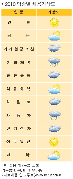 [아시아경제 박충훈 기자] 올해 상장사의 채용시장이 불황으로 인해 저조했던 지난해보다도 더 어려울 것이란 전망이 나왔다. 더블딥에 대한 불안감으로 기업들이 쉽게 채용문을 열기 주저하기 때문이라는 전문가들의 분석이다. 21일 취업·인사포털 인크루트는 1800여개 상장사를 대상으로 조사한 올해 대졸신입 채용계획을 발표했다. 채용담당자와의 일대일 전화면접 방식으로 진행된 이번 조사에서 조사에 응한 기업은 총 993개사.이중 채용여부를 확정한 757개사가 올해 채용할 인원은 총 1만 8233명. 이는 지난해 같은 기업이 뽑은 2만 591명에 비해 11.5%가 감소했다. 지난해 상장사 일자리 10개 중 1개가 사라지는 셈이다.최근 대한상공회의소·인크루트가 공동 조사했던 '500대 기업 일자리 기상도' 조사에서 매출 상위 500대 기업의 일자리가 전년대비 5.6% 감소할 것으로 나타났다.즉 11.5%란 수치는 대기업 외 중견, 중소기업까지 포함한 수치로 올해 중소기업의 채용사정이 더욱 안좋다는 것을 시사한다. 기업규모별 일자리 증감률을 보면 대기업이 1만 2270명으로 전년대비 8.2% 감소, 중견기업은 4079명으로 전년대비 12.0% 감소, 중소기업은 1884명을 채용예정으로 지난해 27.2%가 줄어들 것으로 조사됐다.채용에 나서는 비율 역시 32.3%에 머물렀다. 이는 인크루트가 2003년 이후 상장사를 대상으로 매년 채용계획 조사를 실시한 이래 최저 비율이다. 대졸신입을 뽑기로 확정한 곳이 전체의 3분의 1도 채 되지 않으며 반대로 채용계획이 없다는 비율(43.9%)은 8년래 가장 높았다. 전체 상장사 일자리에서 기업규모별로 차지하는 비중을 봐도 중소기업의 채용시장이 대기업, 중견기업보다 훨씬 더 어려워지리란 예측이다.응답기업 중 대기업이 64.9%에서 67.3%로 전체 채용 시장에서 비중이 늘어난데 비해 중견기업 올해 22.4%로 전년대비 0.1%p감소, 중소기업은 지난해 12.6%에서 올해 10.3%로 비중이 2.3%p 줄어들 것으로 나타났다.채용에 나서는 비율도 대기업은 52.2%로 절반을 넘어섰지만, 중견기업은 38.5%로 뚝 떨어졌고, 중소기업에 이르러서는 25.6%에 불과할 것으로 전망됐다.이광석 인크루트 대표는 "국내 전체 고용시장의 대부분을 차지하는 것은 중소기업”이라며 “중소기업의 채용 기상도가 흐리다는 것은 곧 전체 고용상황에도 먹구름이 드리우게 될 것이란 의미”라고 설명했다. 이 대표는 "경기가 예상보다 빠르게 호전되면 중소기업들이 탄력적으로 채용에 나설 가능성이 있고, 중견·중소기업에 대한 영향력과 파급력이 큰 대기업이 앞장서 인력을 더 많이 뽑는다면 채용시장이 살아날 여지도 있다”고 덧붙였다. 업종별로는 스마트폰 등 첨단기술 경쟁이 본격화된 정보통신 업종, 또 4대강 사업을 앞두고 있는 건설업종에서 채용이 활발할 것으로 예상된다.전년대비 채용규모의 증감을 보면 정보통신 업종이 15.2%, 건설업종이 14.8% 증가할 것으로 나타났다. 제약, 금융은 전년과 보합세이며 나머지 대부분의 업종은 부진할 가능성이 크다. 특히 자동차(67.7%↓)와 기타제조(37.0%↓)의 감소폭이 크다.