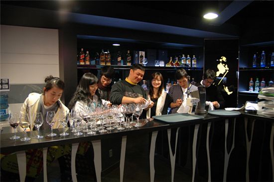 [아시아경제 박지성 기자]재일교포 3세인 임수자(29·일본명 하야시 히사코·여)씨는 한국에서 특별한 강의를 듣고 있다. 방학 중인 그녀가 선택한 강의는 비영리 주류전문 교육기관인 조니워커 스쿨의 와인 클래스. “빠른 말과 전문용어는 아직 어려워요”라며 겸손을 보이지만 그녀의 한국어는 대화의 막힘이 없을 만큼 수준급이다. 지난해 3월 경희대 한국어학당으로 유학 온 뒤 일 년 만에 이룬 성취다. 적극적으로 사람들과 어울리려는 노력 덕이다. 그녀는 “전공은 유아교육이지만 와인관련 공부는 계속 할 예정이에요”라며 새로운 만남에 대한 기쁨을 표현했다. 같은 취미로 뭉친 사람들과 소통이 즐겁다는 임씨. 그녀는 이제 와인 클래스의 공식 일본어 선생님이다. 스쿨의 홍재경(43·서대문·남)원장은 “수자 씨 수료 조건은 전 수강생에게 일본어 노래 한 곡씩 가르치는 겁니다”라고 농담을 건넨다. 그들의 격 없는 대화에서 세대나 국가의 장벽은 없어 보였다.바텐더 클래스의 곽기환씨(40·영등포·남). 능숙한 모습으로 맥주를 따르는 모습을 시연하고 있다.