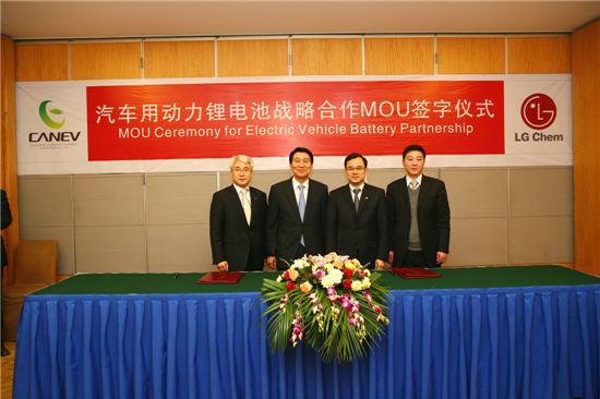 中장안 신에너지기차와 전략적 제휴하반기 리튬이온 배터리 공급 예상[아시아경제 김혜원 기자] LG화학(대표 김반석)이 중국 메이저 자동차그룹 장안기차(長安汽車)의 계열인 '장안 신에너지기차'와 전략적 제휴를 맺고 중국 전기자동차용 배터리 시장에 진출한다.5일 LG화학에 따르면 최근 중국 충칭(重慶)에서 LG화학 김반석 부회장, 중대형전지사업담당 함재경 전무, 장안기차그룹 주화롱(朱華榮) 부총경리, 장안 신에너지기차 저보우(周波) 총경리 등 관계자들이 참석한 가운데 '전기자동차용 배터리 협력을 위한 양해각서(MOU) 체결식'을 가졌다.'장안 신에너지기차'는 장안기차의 연구개발 전담 자회사로 양사는 이번 제휴를 통해 향후 친환경 자동차용 배터리 시스템의 개발 및 상용화를 위해 적극 협력하고 , 장안기차의 하이브리드 및 전기자동차 양산에 관련 기술을 적용해 나가기로 했다.장안기차는 지난해 6월 하이브리드 밴(Van) CV11모델을 시장에 출시하였으며 다음 달에는 승용차 모델인 CV8을 출시할 예정이다. 현재 두 모델 모두 니켈수소 배터리를 적용하고 있으나 차량의 성능 향상을 위해 하반기부터는 리튬이온 배터리로 전격 교체할 계획.이에 따라 LG화학은 올 하반기부터 장안기차의 하이브리드 자동차에 리튬이온 배터리를 본격 공급할 것으로 예상된다.장안기차는 지난해 180만대의 자동차를 판매해 210억위안(약 3조6000억원)의 매출을 기록한 중국 3위의 자동차 업체로 중국 기업으로는 처음으로 자체 기술을 통해 니켈수소 배터리 기반의 풀 하이브리드카(배터리 힘만으로 차체를 구동시킬 수 있는 자동차)를 개발했다.김반석 LG화학 부회장은 "국내와 미국을 비롯해 세계 최대 자동차 생산기지이자 소비시장인 중국에도 본격 진출함으로써 전기자동차용 배터리 분야에서의 세계 1위 지위를 더욱 확고히 하게 됐다"며 "앞으로도 미국, 유럽, 일본 등 세계 유수 자동차 업체들을 대상으로 추가적인 공급 수주가 가시화될 것으로 예상되는 만큼 안정적인 양산체제 구축은 물론 R&D분야에도 지속적인 투자를 아끼지 않을 것"이라고 밝혔다.LG화학은 현재 전 세계 고객들을 대상으로 안정적인 공급 대응력을 갖추기 위해 국내 및 해외 현지 공장 건설에 박차를 가하고 있다.국내의 경우 충북 오창산업단지에 위치한 오창테크노파크에 2013년까지 총 1조원을 투자해 전기자동차용 배터리 생산 공장을 건설하고 있으며, 올 하반기에는 우선 미국 GM, Eaton(이튼)을 비롯해 국내 CT&T에 신규 물량을 본격적으로 공급할 계획이다.또한, 미국 미시건주 디트로이트 현지에는 약 3억달러를 투자해 하이브리드 자동차 기준으로 약 25만대 분량의 배터리 셀(Cell)을 공급할 수 있는 현지 공장을 건설, 2012년부터 첫 상업 생산을 시작할 예정이다.김혜원 기자 kimhye@asiae.co.kr<ⓒ세계를 보는 창 경제를 보는 눈, 아시아경제(www.asiae.co.kr) 무단전재 배포금지>