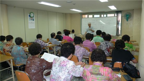 강북노인복지관 문해교실 수업 장면