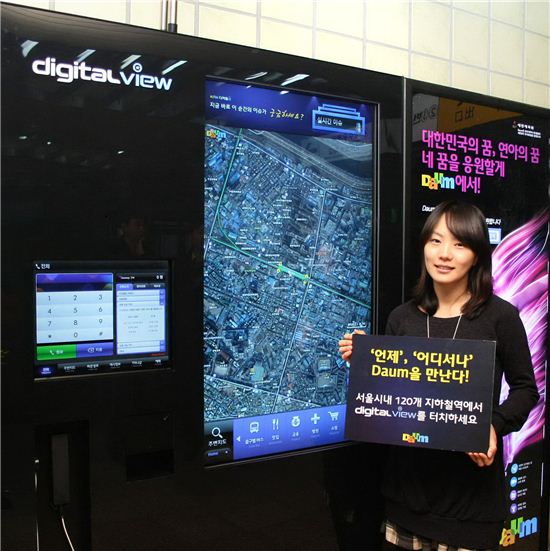 [아시아경제 함정선 기자]앞으로 서울 1~4호선 지하철역에서 다음의 지도 서비스와 다양한 엔터테인먼트 콘텐츠들을 만나볼 수 있을 전망이다. 다음커뮤니케이션(대표 최세훈)은 오는 16일 아이피 텔레포니 시스템 공급업체 핑거터치 (대표 신정헌)와 공동으로 서울 1~4호선의 모든 지하철 역(117개역)에 지도, 뉴스, 엔터테인먼트 등 실시간 정보와 IP폰(인터넷 전화) 서비스를 제공하는 디지털 영상 시스템 '디지털뷰' 900여대를 설치한다고 11일 밝혔다. 디지털뷰를 통해 제공되는 서비스는 ▲다음의 항공사진인 '스카이뷰'와 서울 전 지역 360도 파노라마 거리사진인 '로드뷰' 등 지도 정보(주변버스노선, 추천맛집, 가볼만한곳, 공공시설, 병원/의료시설 등) ▲역내정보 (역내주요시설물, 역내지도, 편의시설 등) ▲노선정보 (최단거리 찾기, 역 주변지도 등) ▲실시간 정보 (실시간 이슈 검색어, 뉴스, 스포츠, 날씨, 증권, 환율), 다음영화, 다음부동산, 스포츠 이벤트 ▲엔터테인먼트 콘텐츠다. (주요 콘텐츠 화면 사진 있음) 다음은 웹을 통해 제공되는 주요 서비스를 디지털뷰에서도 이용할 수 있도록 제공 콘텐츠를 점차 확대할 계획이다. 이와 함께 티머니 카드를 이용해 실시간 영화표 예매 등이 가능한 결재 시스템을 이용할 수 있도록 하고 주변 상점들의 쿠폰도 제공한다. 시민들은 휴대폰으로 쿠폰을 촬영해 주변 상점에서 이용할 수 있다. 디지털뷰는 이 밖에도 IP폰(인터넷 전화) 기능도 갖추고 있다. 디지털뷰는 46인치 메인터치스크린과 17인치 보조터치스크린으로 구성됐으며 메인 스크린을 통해 지도, 실시간 정보 등 주요 콘텐츠가 제공되고 보조 스크린에는 인터넷 전화 사용, 영화표 예매 등을 위한 티머니 결제 창이 나타난다. 강남역, 삼성역, 명동역 등 유동인구가 많은 지하철 1~4 호선의 117개 모든 역사에 총 913대가 설치되며 오는 16일부터 순차적으로 이용이 가능하다. 디지털뷰가 설치되는 1~4호선은 서울시 및 수도권 지역의 450만명이 이용하고 있다. 16일로 창립 15주년을 맞는 다음커뮤니케이션은 IT컨버전스의 흐름에 발빠르게 대응하면서 PC, 모바일, IPTV 등으로 다음의 이용자 접점을 확대하는 'Life On Daum' 전략을 추진해 왔다. 이번 디지털뷰를 통해 다음은 사용자들에게 보다 가깝게 다가갈 전략이다. 다음의 최세훈 대표는 "디바이스 간 경계가 허물어 지는 디지털 컨버전스 혁명이 우리의 일상 생활을 하루가 다르게 바꾸고 있다"며 "다음이 기존의 PC와 모바일 뿐 아니라 디지털뷰까지 확대됨으로써 모든 스크린에서 이용자들이 'On Daum' 할 수 있는 생활 플랫폼으로, 광고주에게는 브랜딩과 이익에 기여하는 비즈니스 플랫폼으로 거듭 나게 됐다"고 말했다. 함정선 기자 mint@asiae.co.kr<ⓒ세계를 보는 창 경제를 보는 눈, 아시아경제(www.asiae.co.kr) 무단전재 배포금지>