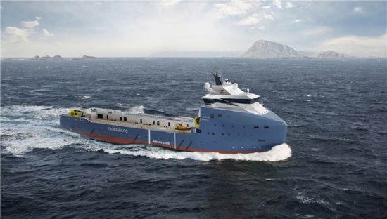 STX유럽이 시몬 뫽스떼르 레데리로부터 수주한 해양작업지원선(PSV) 개념도<br />