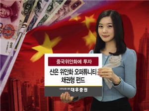 [아시아경제 구경민 기자]대우증권은 오는 26일까지 중국 위안화에 투자하는 ‘산은위안화오퍼튜니티 채권형’펀드를 판매한다.