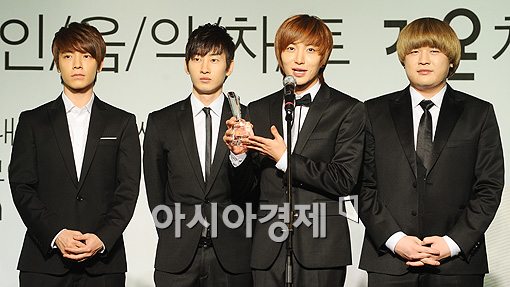 [아시아경제 이기범 기자]23일 오전 서울 소공동 웨스틴조선호텔에서 열린 공인 음악차트 '가온차트' 발간 기념식에서 '2009 앨범상'을 수상한 슈퍼주니어가 소감을 말하고 있다.이기범 기자 metro83@asiae.co.kr<ⓒ아시아경제 & 스투닷컴(stoo.com)이 만드는 온오프라인 연예뉴스>