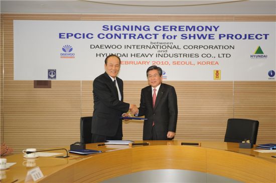 대우인터내셔널 발주, 가스플랫폼, 파이프라인 등 턴키 수행미얀마 서해상 쉐 가스전 개발, 2013년까지 설치[아시아경제 채명석 기자] 현대중공업은 23일 총 공사금액 14억달러(약 1조6000억원) 규모의 미얀마 쉐(SHWE) 가스전 공사에 대한 정식계약 서명식을 가졌다.이 날 서명식은 오전 11시 서울 남대문로 대우인터내셔널 본사에서 열렸으며, 오병욱 현대중공업 사장과 강창준 해양사업본부장, 김재용 대우인터내셔널 사장, 임채문 부사장 등 회사 관계자들이 참석했다. 이 공사는 미얀마 서부 해안으로부터 약 70km 떨어진 해상의 쉐 가스전을 개발하는 것으로, 현대중공업은 지난해 10월 최종 낙찰업체로 선정돼 대우인터내셔널로부터 발주의향서를 받은 바 있다. 현대중공업은 4만t급 해상가스플랫폼 1기(일일 5억 입방피트(ft3) 생산)와 해저생산설비, 총 길이 126.5km의 해저 파이프라인, 육상 터미널 및 육상기지 등 공사를 수행하며, 울산 본사에서 직접 제작해 운송한 뒤 오는 2013년 4월까지 미얀마 현지에서 공사를 완료할 계획이다.특히 현대중공업은 이번 공사를 기본설계에서부터 기자재 공급, 제작, 운송 및 설치, 시운전까지 모든 공정을 책임지는 턴키방식으로 수행하게 된다.오 사장은 이 날 “주어진 공기 내에 최상의 품질로써 공사를 수행하겠다”면서, “이 공사를 계기로 현대중공업과 대우인터내셔널과의 긴밀한 협조관계는 더욱 발전할 수 있을 것”이라고 말했다. 현대중공업은 공사의 성공적인 수행을 통해 향후 미얀마에서 추가 발주 예정인 유사 공사 수주전에서도 유리한 위치를 점할 수 있을 것으로 기대하고 있다. 한편 현대중공업은 올해 들어 노르웨이에서 11억달러 규모의 세계 최대 원통형 부유식원유생산저장하역설비(FPSO) 공사를 수주하는 등 해양플랜트 분야에서 활발한 수주 활동을 펼치고 있다.채명석 기자 oricms@asiae.co.kr<ⓒ세계를 보는 창 경제를 보는 눈, 아시아경제(www.asiae.co.kr) 무단전재 배포금지>