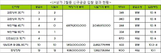 [아시아경제 김정수 기자] 한국토지주택공사(LH)의 새해 첫 상가 신규 공급에 58여억원이 몰리면서 ‘쾌조의 스타트’를 끊었다.상가정보연구소에 따르면 지난 19일~23일까지 수도권, 비수도권 포함 7개단지 총 42호 점포 신규공급 물량중 71.4%인 30호가 낙찰되면서 총 낙찰금액은 58억5102만6552원으로 집계됐다.특히 성남도촌 B-2블럭(공분,633가구) 공급물량 10호는 낙찰가률 113%(나상가)~206%(가상가)선을 기록하며 100% 낙찰됐고 예정가 총액 18억1300만원을 훨씬 웃돈 24억5277만9998원이 유입됐다.비수도권에서도 포항장량 1BL(국임, 900가구) 12호 점포가 모두 팔려나가면서 예정가격 총액 9억3800원 보다 4억1473만5554원이 늘어난 13억5273만5554원이 몰렸다.그러나 20호가 공급된 인천지역에서는 김포양곡 3단지(공분,345가구) 1호, 김포양곡 7단지(공분,380가구) 1호, 인천삼산(3) 1단지(국임,870가구) 1호, 부천여월 4단지(공분,244가구) 4호, 부천여월 5단지(공분,334가구) 5호등 총 12호가 유찰됐다.총 낙찰금액은 예정가격 총액 48억7920만원의 42% 수준인 20억4551만1000원 유입에 그쳤다.유찰상가는 24일부터 선착순 수의계약이 실시된다.박대원 상가정보연구소장은 “LH상가가 올해도 비교적 산뜻한 출발을 했다”며 “그러나 분양성적이 저조했던 지역은 단지내상가가 소비층 접근을 차단하거나 상가 구조의 개방감이 떨어지는 설계 또는 지형여건에 따른 계단설치등 상가 컨디션을 저해한 요인과 단지 배후세대가 적어 투자자들의 관심를 이끌지 못했던 것으로 분석된다”고 했다.김정수 기자 kjs@asiae.co.kr<ⓒ세계를 보는 창 경제를 보는 눈, 아시아경제(www.asiae.co.kr) 무단전재 배포금지>
