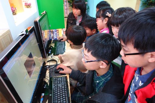 24일 오후 강원도 화천 실내초등학교에 개관된 제6호 뉴스킨 희망도서관에서 학생들이 책을 읽고 정보화 시스템을 이용해 보며 즐거운 시간을 보내고 있다.
