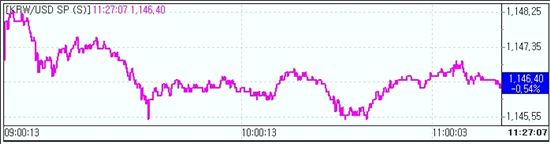 [아시아경제 정선영 기자]원·달러 환율이 당국의 스무딩오퍼레이션을 강하게 의식하는 분위기다. 그리스 우려감 해소로 오전부터 역외매도가 유입됐으나 1145원 위에서 당국 개입 경계감이 가로막으면서 환율은 1140원대 중반에 머물고 있다. 3일 오전 11시13분 현재 원·달러 환율은 전일대비 6.10원 하락한 1146.5원에 거래되고 있다. 전일 원달러NDF 환율이 1146.5원에서 막히고 오른 만큼 1145원선에 대한 경계감이 강하게 나타나고 있다. 한 시중은행 외환딜러는 "1146원선에서 개입 경계감이 작용하면서 환율이 지지되고 있다"며 "눈에 띄는 수급도 없어 조용한 상태"라고 언급했다. 또 다른 외환딜러는 "최근 거래량이 늘면서 치열한 손바뀜이 있으나 한방향으로 승부가 나고 있지 않다"며 "역외세력들 아직 숏을 유지하고 있는 상황에서 당국눈치와 월초 수입결제만 해결되면 레벨다운도 가능할 듯하다"고 설명했다. 이날 한국은행은 '2010년 2월말 외환보유액'은 2706억6000만달러로 사상 최대를 기록했던 전월보다 30억3000만달러 감소했다고 밝혔다. 오전 11시22분 현재 코스피지수는 2.56포인트 오른 1617.68을 기록중이며 외국인은 코스피에서 319억원 순매수하고 있다. 정선영 기자 sigumi@asiae.co.kr<ⓒ세계를 보는 창 경제를 보는 눈, 아시아경제(www.asiae.co.kr) 무단전재 배포금지>정선영 기자 sigumi@asiae.co.kr<ⓒ아시아 대표 석간 '아시아경제' (www.newsva.co.kr) 무단전재 배포금지>