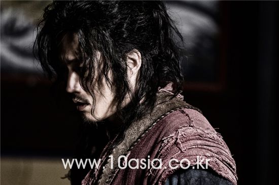 10: Then what kind of a world do you think "Hunters" is depicting? Jang: The most important element is the people. I think "Hunters" begins its story by telling how people became influenced by their history and how that history has continued on into the present. In the case of Dae-gil, he could not marry the woman he loved because of the status system, which is also what ruined his family. So after he becomes a slave hunter, he hangs around with the commoners and lowly people like Choi Jang-goon and Wang-son although he was born an aristocrat. So there is no such thing as a good or bad character in "Hunters" because they are all people who have no choice but to follow their circumstances.10: Do you see Dae-gil as someone who became who he was because of the historical circumstance he was in?Jang: My favorite fictional character is Choi Dae-chi from [1991 MBC epic drama] "Eyes of Dawn" and his life completely changed due to the historical circumstance he was in. If Japan had not annexed Korea, if he had not been drafted to the military, if he had not met Yoon Yeo-ok who was one of the Japanese army's comfort women, he would not have turned into a North Korean partisan. This man has no ideology but he had to belong to some organization while he was alive and happened to gain a following. It is the same with Dae-gil. Tae-ha is fighting for a political cause. And slaves unite and learn the ideology of 'the world of slaves' in order to survive. But slave hunters have no ideology. They live their lives by the day by catching a slave and Dae-gil will keep searching for Eon-nyeon. And he has become an animal-like slave hunter in order to survive and the best one too. He could have gotten stabbed to death in a village somewhere if he hadn't found Eon-nyeon.10: But Dae-gil is too complex a character to just say that he lives according to the flow of the times. In "Hunters", you could describe Tae-ha as a straight arrow and Wang-son as frivolous, but you can't define Dae-gil with just a couple of words. He is the lowliest of the low yet innocent when it comes to love, and he is imprudent yet also serious. Jang: Dae-gil was born an aristocrat but lives amongst the commoners so that is why he is a character likely to develop an ideology regarding equality. I play Dae-gil based on this feeling. And Dae-gil has tried his utmost to survive after becoming a commoner. Even the son of the deceased eats food when he gets hungry, so you can only imagine how hard of a time Dae-gil would have. On most days, he would have been making a living while on some days, he could have laughed and talked about the old days. That's why I think Dae-gil's unique characteristics are expressed through my experiences from everyday life and my mentality.10: And what are those characteristics, do you think?Jang: For example, the character Chun Ji-ho is really cruel. He is able to call his subordinates in a composed voice right after killing someone. Dae-gil may be better at killing people but he is not someone with that kind of character. He is a slave hunter who captures slaves, but sometimes also helps slaves. And it's not because he is nice but because on some days, he is in a good mood and is reminded of the old days. If he wasn't feeling well on that day he might not have saved them. There is also a noble side left to him so he is clinging onto the last piece of wild animalistic nature he has. I don't have a fixed concept for my character -- I just try to go with the feelings he would feel within his circumstances in his kind of life.Korean actor Jang Hyuk [Lee Jin-hyuk/10Asia]