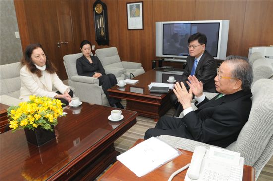 [아시아경제 김혜원 기자] 조석래 전국경제인연합회 회장은 10일 엘리자베스 로랭(Elisabeth LAURIN) 주한 프랑스 대사의 예방을 받고 양국 간 경제 협력 방안과 오는 11월 개최되는 G20 및 외규장각 도서 영구대여 등 현안을 논의했다.조 회장은 엘리자베스 로랭 대사에게 11월 한국에서 열리는 G20 정상회의에 대해 설명하고 프랑스 당국의 협조를 부탁했다. 특히 G20 정상회담 전에 각 국가의 주요 경제인들이 모여 전 세계 경제 협력을 모색하는 '서울 G20 비즈니스 서밋'을 소개하면서 양국 경제계 간 긴밀한 협력도 당부했다.올해 4월 정식 서명을 앞두고 있는 한ㆍEU FTA에 대해서도 조 회장은 "EU와의 FTA가 조속히 체결돼 프랑스와 교역이 더욱 활발해지기를 바란다"고 전했다. 또 우리 정부가 프랑스 정부에 외규장각 도서의 '영구대여'를 공식 요청한 데 대해 협조를 부탁했다.김혜원 기자 kimhye@asiae.co.kr<ⓒ세계를 보는 창 경제를 보는 눈, 아시아경제(www.asiae.co.kr) 무단전재 배포금지>
