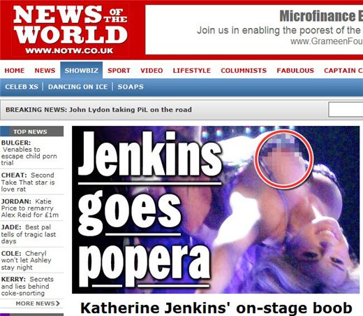 [아시아경제 이진수 기자] 성인잡지 ‘플레이보이’로부터 160만 달러(약 18억5000만 원)에 누드 제의까지 받을 정도로 섹시한 ‘성악계의 신데렐라’ 캐서린 젠킨스(29)가 공연 중 가슴 노출 사고를 일으켰다.영국 타블로이드 신문 더 선이 일요판으로 발행하는 ‘뉴스 오브 더 월드’ 14일(현지시간)자에 따르면 가슴 노출 사고는 12일 맨체스터 이브닝 뉴스 아레나에서 금발의 메조소프라노 젠킨스가 공중을 나는 몸동작 도중 일어났다고.공중에서 가슴이 움푹 패인 드레스 차림으로 근육질 남성 무용수의 팔에 몸을 맡긴 채 움직이다 일어난 사고라는 것.