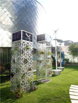 세계 3대 디자인 공모전 중의 하나인 ‘2010 레드 닷 어워드’에 선정된 GS건설 'SOLBEAM(태양광넝쿨시스템)'은 별도의 추가적 에너지원 공급 없이 태양광을 이용해 조명 및 시계탑 기능을 담당하는 신개념 친환경 조형물이다.