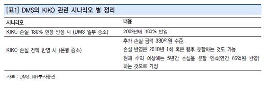 [아시아경제 이솔 기자]NH투자증권은 24일 DMS에 대해 주가 불확실성으로 작용한 악재는 올해 모두 사라질 전망이라며 투자의견 '매수'와 목표주가 1만원을 유지했다.강윤흠 애널리스트는 "2008년 크게 증가했던 매출채권은 지난해 상당 부분 회수했다"며 "대만·중국 등 후발 LCD업체들의 투자가 본격화되며 관련 리스크는 사라질 전망"이라고 전했다. DMS는 국내외 대부분의 패널 업체를 고객으로 확보, 장비 매출에 불확실성이 크지 않다.키코 관련 소송이 패소했을 경우 예상되는 추가적 손실은 260억원 수준(손실 금액 전부를 일시에 인식하는 경우)으로 제한적일 것이라는 전망도 내놨다. 이에 내년 이후 수익예상에는 기존에 분할 인식할 것으로 가정했던 비용 요인이 사라지며 상향 조정 이유가 발생한다는 설명이다.