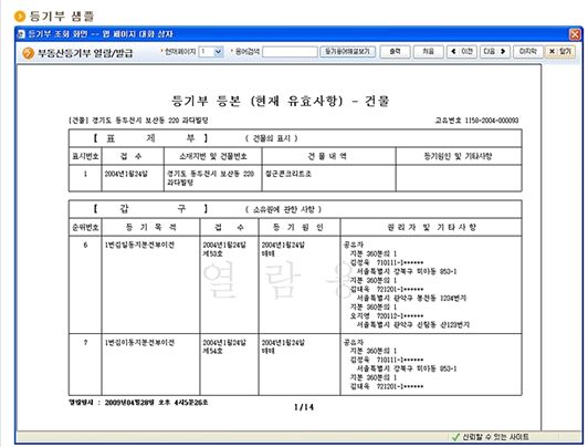 [아시아경제 조민서 기자]집 계약을 하기 전에 반드시 거쳐야 하는 절차가 있다. 바로 해당 부동산의 등기부를 확인하는 일이다. 등기부에는 건물의 형태, 구조에서부터 현재 소유주가 누구인지, 권리 행사에 제약이 있는지 등의 기록이 담겨있다.등기부등본은 토지 등기부등본, 건물 등기부등본, 집합건물 등기부등본 등이 있다. 대지와 건물이 함께 거래되는 단독주택 같은 부동산은 토지 등기부등본과 건물 등기부등본을 따로 열람해야 한다. 아파트와 같은 집합건물은 한 동 전체에 대한 표제부가 더 있고 건물과 토지의 표시로 나눠진다.등기부는 표제부·갑구·을구로 구성돼 있다. 등기부의 첫 장에 나오는 것이 표제부이다. 건축물의 종류가 무엇이며, 전체 몇 층인지, 전체토지 면적은 어느 정도인지 등이 표시돼 있다. 갑구에는 소유권에 관한 내용이 기재돼 있다. 특히 소유자의 권리 행사에 영향을 미치는 각종 등기 설정과 변경, 말소에 관한 사항이 기재돼 있으므로 주의를 기울여 살펴야 한다. 소유권에 대한 압류, 가압류, 경매개시결정이나 가처분 등 처분제한 등기 등의 사항이 어떤지도 파악해야 한다. 경매개시결정등기는 이미 그 부동산에 대해 경매가 진행되고 있음을 의미한다. 또 부동산 채권자가 채무자의 소유권을 말소하기 위해 처분금지 가처분을 해 승소하게 되면 가처분한 시점 이후의 모든 등기는 말소될 가능성이 크다는 사실도 유의해야 한다.등기부 을구에는 소유권 이외의 권리인 저당권이나 전세권, 지역권, 지상권, 임차권 등이 등기돼 있다. 저당권이 설정돼 있는 경우 경매의 원인이 되므로 주의해야 한다. 또 전세권이 설정돼 있는 경우는 특별한 사정이 없는 한 전세 기간 내에 전세권자를 임의로 내보낼 수 없다.등기부는 내용이 적고, 전체 장수가 적을수록 안심할만 하다. 단기간에 권리자가 여러번 바뀌는 등 권리변동 관계가 빈번한 경우는 일단 의심해봐야 한다. 또 담보물권이나 예고등기, 가등기가 설정돼 있는 집도 재검토해볼 필요성이 있다.조민서 기자 summer@asiae.co.kr<ⓒ세계를 보는 창 경제를 보는 눈, 아시아경제(www.asiae.co.kr) 무단전재 배포금지>조민서 기자 summer@asiae.co.kr<ⓒ아시아 대표 석간 '아시아경제' (www.newsva.co.kr) 무단전재 배포금지>