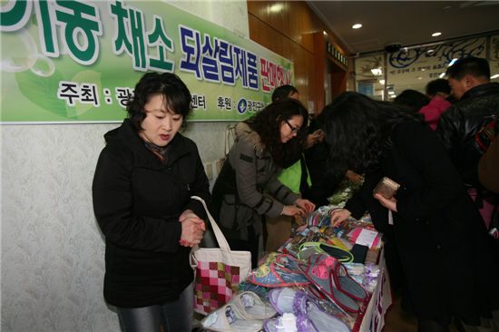 지역자활센터에서 생산한 제품은 저소득층 주민들의 자립을 위한 노력의 결실인 만큼 이날 판매한 수익금 전액은 자활공동체의 창업자금과 자립준비적립금 등 향후 자활의 목적으로 사용될 계획이다. 자활사업자 7명으로 구성돼 있는 늘푸른‘되살림사업단’은 폐현수막 등을 재생해 시장 바구니나 썬캡을 생산하고 있으며 자양2동에서 녹색가게를 운영하고 행사장에서 판촉행사를 벌여 수익을 창출하고 있다.또 친환경영농사업‘참살이’는 6명의 참여자가 남양주 이패동에서 유기농작물을 직접 재배해 식당 등으로 판매한다. 친환경농산물인증을 받아 좋은 가격에 판매가 가능하다. 한경래 사회복지과장은 “자활사업단의 제품을 적극적으로 홍보하여 저소득 취약계층 주민들의 자활 의지를 격려하기 위해 이 행사를 마련하게 됐다”고 말했다.박종일 기자 dream@asiae.co.kr<ⓒ세계를 보는 창 경제를 보는 눈, 아시아경제(www.asiae.co.kr) 무단전재 배포금지>
