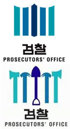 실제 검찰 로고(위)와 '그것이 알고 싶다'에서 잘못 내보낸 로고(아래).