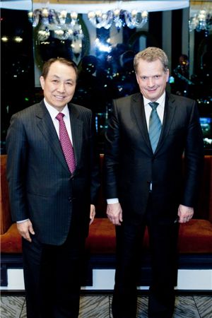 강덕수 STX그룹 회장(왼쪽)과 사울리 니니스토 핀란드 국회의장이 기념촬영하고 있다.