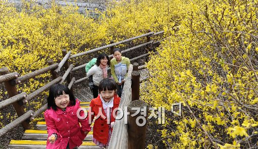 [아시아경제 이재문 기자] 4일 봄의 전령 개나리꽃이 활짝 핀 서울 성동구 응봉산을 찾은 나들이객들이 개나리꽃 길을 뛰놀며 즐거운 시간을 보내고 있다.이재문 기자 moon@asiae.co.kr<ⓒ세계를 보는 창 경제를 보는 눈, 아시아경제(www.asiae.co.kr) 무단전재 배포금지>
