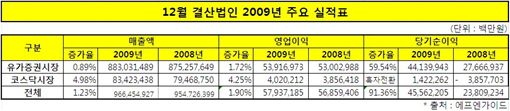 [아시아경제 임선태 기자, 김유리 기자]12월 결산법인들이 지난해 환율효과를 톡톡히 본 것으로 나타났다. 특히 당기순이익의 증가폭이 눈부셨다. 5일 에프엔가이드(FN Guide) 및 본지가 12월 결산 유가증권시장 상장 법인 645개사의 실적을 종합 분석한 결과, 매출액과 영업이익은 직전해 대비 각각 0.89%, 1.72% 증가한 883조314억원, 53조9169억원을 기록했다. 같은 기간 해당 법인들의 당기순이익은 직전해 대비 59.54% 오른 44조1399억원이었다. 12월 결산 코스닥시장 987개사의 지난해 매출액 및 영업이익은 직전해 대비 각각 4.98%, 4.25% 증가한 83조4234억원, 40조2021억원으로 집계다. 당기순이익은 흑자 전환하며 1조4222억원을 기록했다. 이같은 실적호조에 대해 전문가들은 환율효과에 주목했다. 이성권 신한금융투자 애널리스트는 "업종에 따라 차이가 있을 수 있겠지만 환율 부분에서의 임팩트가 가장 컸을 것"이라며 "원자재 수입 비중이 낮고 수출 비중이 높은 산업일수록 지난해 영업하기 좋은 환경이었다"고 설명했다. 이어 "지난 2008년 폭발적인 유가 상승 시즌에서 상대적으로 지난해 유가가 안정세로 돌아섰다는 점도 간접적인 영향을 미쳤을 것"이라고 분석했다.두드러진 당기순이익의 급증도 환율의 영향이 가장 컸던 것으로 분석됐다. 박소연 한국투자증권 애널리스트는 "외환 관련 계정은 영업이익 하단으로 잡힌다"며 "키코 손익 등 외환관련 변동성이 밑단에 잡히면서 당기순익에 큰 상승이 있었던 것으로 보인다"고 설명했다. 그는 "다만 이같은 당기순이익 증가세는 환율효과로 인한 일시적인 착시효과일 수 있음을 유의해야 한다"며 "지속 가능한 성장을 가늠하기 위해서는 영업이익을 살펴야 한다"고 덧붙였다.유가증권시장 법인 중 영업이익이 가장 크게 증가한 10개사 중 제지회사의 성장세가 눈에 띄었다. 대한펄프 한창제지의 지난해 영업이익은 각각 130억5300만원, 73억9800만원으로 직전해 대비 8214%, 2600%에 육박하는 성장률을 보였다. 이밖에 대한제분 마니커 카프로 CJ 남광토건 송원산업 태광산업 조비 등이 영업이익률 증가 상위 10개사에 이름을 올렸다. 박소연 한국투자증권 애널리스트는 "지난해 제지업황이 나쁘지 않은데다 지난 2008년 대비 기저효과도 영향을 미쳤다"고 풀이했다.2008년 금융위기 여파로 흑자전환한 기업이 크게 증가한 점도 특징이다.지난해 유가증권시장 상장 법인 중 흑자 전환에 성공한 법인과 적자 규모가 축소된 법인이 각각 105개사, 37개사로 나타났기 때문이다. 코스닥시장의 경우 169개사가 흑자 전환했고 153개사는 적자 규모가 축소됐다. 박 애널리스트는 "금융위기 이후 이어져 온 환율 상승세로 지난해 수출에 주력한 법인 위주로 실적 성장세를 보였다"며 "아울러 낮은 금리로 상장 법인들의 이자 비용 부담이 크게 줄어든 것도 흑자폭 확대에 기여했을 것"이라고 말했다.반면 금융위기 이후 적자 규모가 오히려 확대된 유가증권시장 상장사는 39개사, 적자로 전환된 기업은 50개사로 나타나 실적이 호전된 법인 대비 상대적으로 적은 수치를 기록했다. 코스닥시장의 경우 적자 전환된 기업은 85개사, 적자 규모가 확대된 회사는 106개사다. 임선태 기자 neojwalker@asiae.co.kr김유리 기자 yr61@asiae.co.kr<ⓒ세계를 보는 창 경제를 보는 눈, 아시아경제(www.asiae.co.kr) 무단전재 배포금지>