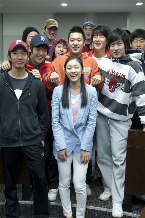 ▲ 김연아 선수가 함께 수업들은 동기들과 활짝 웃고 있다.