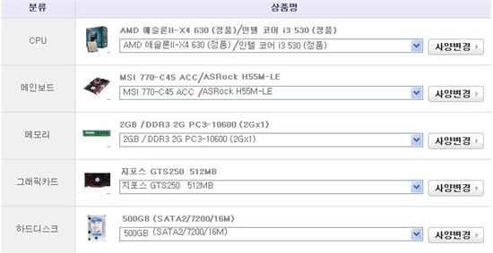 다나와가 제시한 '스타2'를 위한 조립형 PC 부품들
