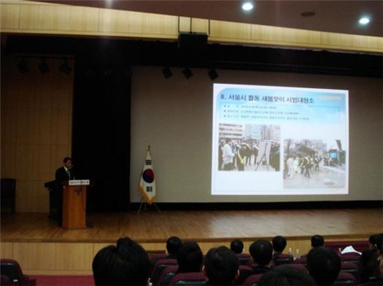 종로구 청소과 관계자가 서울시가 주관한 청소분야 창의경진대회에서 발표하고 있다.