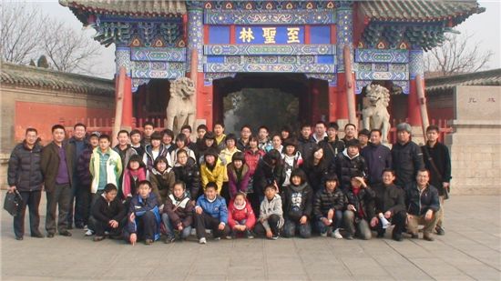 지난 2월 강서구 청소년 교류단이 중국 학생들과 자오위안시 공자 유적지 방문 모습<br />