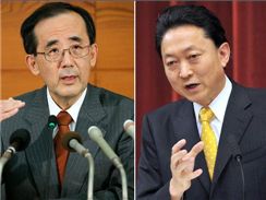 왼쪽 시라카와 총재, 오른쪽 하토야마 총리