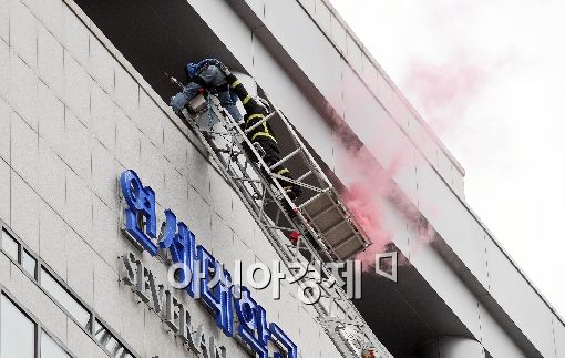 [아시아경제 이재문 기자] 14일 오후 서울 연세의료원에서 열린 2010년도 재난대비 긴급구조종합훈련에서 서대문 소방서 소방대원들과 유관기관 관계자들이 테러폭발 및 대형화재 발생 상황을 모의훈련하고 있다.이재문 기자 moon@asiae.co.kr<ⓒ세계를 보는 창 경제를 보는 눈, 아시아경제(www.asiae.co.kr) 무단전재 배포금지>