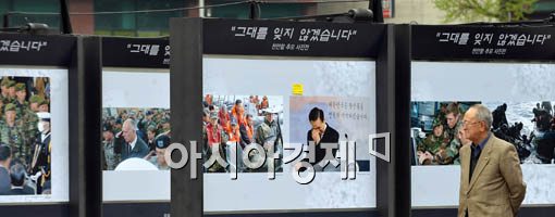 [아시아경제 이재문 기자] 26일 오전 천안함 희생 장병의 합동 분향소가 마련된 서울광장에 전시중인 천안함 추모 사진전을 시민들이 바라보고 있다.이재문 기자 moon@<ⓒ세계를 보는 창 경제를 보는 눈, 아시아경제(www.asiae.co.kr) 무단전재 배포금지>