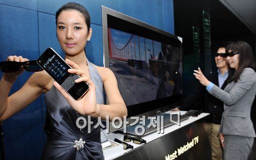 [아시아경제 이재문 기자] 삼성전자가 26일 오전 서울 서초동 삼성 딜라이트에서 기술과 예술의 조화로 탄생한 명품 디자인의 프리미엄 풀HD 3D LED TV 9000시리즈를 선보이고 있다. '프리미엄 풀HD 3D LED TV 9000 시리즈'는 올해 삼성 TV 라인업 중 최고급 모델로 세계서 가장 얇은 7.98mm 두께 초슬림 디자인의 심플한 명품 LED TV라인이다. 55인치 9000 3D 풀패키지 가격은 990만원대이다. 이재문 기자 moon@<ⓒ세계를 보는 창 경제를 보는 눈, 아시아경제(www.asiae.co.kr) 무단전재 배포금지>