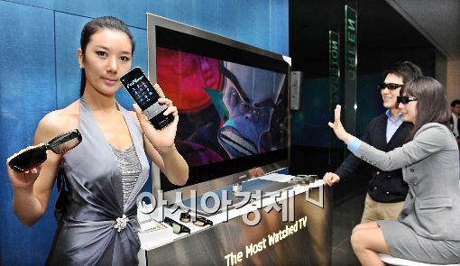 [아시아경제 이재문 기자] 삼성전자가 26일 오전 서울 서초동 삼성 딜라이트에서 기술과 예술의 조화로 탄생한 명품 디자인의 프리미엄 풀HD 3D LED TV 9000시리즈를 선보이고 있다. '프리미엄 풀HD 3D LED TV 9000 시리즈'는 올해 삼성 TV 라인업 중 최고급 모델로 세계서 가장 얇은 7.98mm 두께 초슬림 디자인의 심플한 명품 LED TV라인이다. 55인치 9000 3D 풀패키지 가격은 990만원대이다. 이재문 기자 moon@<ⓒ세계를 보는 창 경제를 보는 눈, 아시아경제(www.asiae.co.kr) 무단전재 배포금지>
