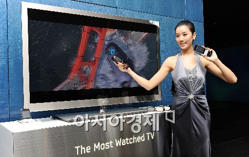 [아시아경제 이재문 기자] 삼성전자가 26일 오전 서울 서초동 삼성 딜라이트에서 기술과 예술의 조화로 탄생한 명품 디자인의 프리미엄 풀HD 3D LED TV 9000시리즈를 선보이고 있다. '프리미엄 풀HD 3D LED TV 9000 시리즈'는 올해 삼성 TV 라인업 중 최고급 모델로 세계서 가장 얇은 7.98mm 두께 초슬림 디자인의 심플한 명품 LED TV라인이다. 55인치 9000 3D 풀패키지 가격은 990만원대이다. 이재문 기자 moon@<ⓒ세계를 보는 창 경제를 보는 눈, 아시아경제(www.asiae.co.kr) 무단전재 배포금지>