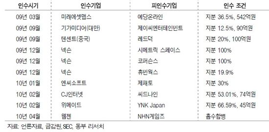 [아시아경제 박선미 기자]M&A가 가속화되고 있는 국내 온라인게임 시장. 동부증권은 27일 선두 게임사들의 풍부한 유동성은 산업내 M&A의 기폭제로 작용하면서 경쟁력 있는 컨텐츠 보유 업체의 가치가 상승할 전망이라고 밝혔다.김석민 애널리스트는 "주요 상장 게임사의 강점과 약점을 분석한 결과, M&A 시장의 최대 수혜주는 엔씨소프트, 위메이드, 게임빌"이라며 "컨텐츠 강화, 해외 진출 확대, 플랫폼 다각화의 증요성이 대두되면서 기존 선두 타이틀의 견조한 현금흐름을 확보한 주요 게임사들의 풍부한 인수 여력이 경쟁 요인으로 부각될 것으로 예상한다"고 설명했다. 엔씨소프트가 주요 상장 게임사 가운데 M&A에 가장 유리한 기업으로 꼽힌데에는 ▲‘데스티니게임즈' ‘아레나넷’ 등 해외 개발사 M&A 경험을 가지고 있고 ▲3000억원의 현금자산과 ‘리니지’ 시리즈, ‘아이온’의 안정적인 캐쉬카우를 확보했으며 ▲ 내부 M&A 전담 부서를 통해 업계 현황을 파악하고 있기 때문인 것으로 분석됐다.그는 "엔씨소프트는 취약부분인 캐주얼 게임부문 강화를 위해 올해 2월에 전문 개발사인 제패토의 지분 30%를 인수했으며, 향후 캐주얼 분야에 특화된 중소형 개발사에 대한 지분 투자를 확대할 전망"이라고 전했다.한편 엔씨소프트에 이어 위메이드가 업계내 가장 인수 여력이 높은 회사로 지적됐다. 김 애널리스트는 "위메이드는 2000억원의 현금자산과 연간 900억원 규모의 매출이 발생하는 중국 1위의 MMORPG ‘미르2’를 확보하고 있다"며 "취약점인 FPS 장르 확보와 경쟁력 있는 개발사 인수는 ‘미르2’의 매출 의존도가 너무 높다는 리스크 해소에 일조할 것으로 기대된다"고 분석했다.박선미 기자 psm82@<ⓒ세계를 보는 창 경제를 보는 눈, 아시아경제(www.asiae.co.kr) 무단전재 배포금지>