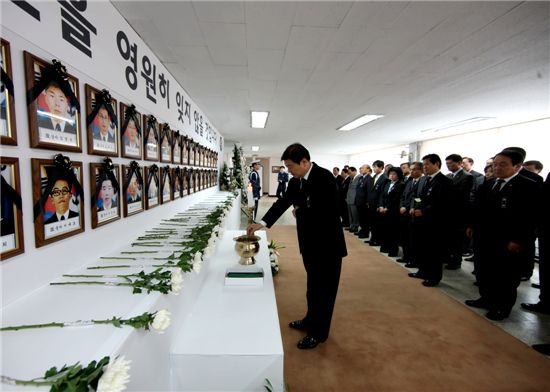 [아시아경제 박종일 기자]금천구(구청장 한인수)는 천안함 희생 장병 국가애도기간동안 필수요원을 제외한 전직원 853명이 금천구청 옆 공군 제3방공포병여단 면회실에 마련된 천안함 희생 장병 분향소를 찾아 조문할 예정이다. 사진은 한인수 금천구청장을 비롯한 각 국장, 과장, 동장 등 40여명이 27일 오전 9시 30분에 분향소를 찾은 가운데 한인수 금천구청장이 향을 꽂고 있다.박종일 기자 dream@<ⓒ세계를 보는 창 경제를 보는 눈, 아시아경제(www.asiae.co.kr) 무단전재 배포금지>