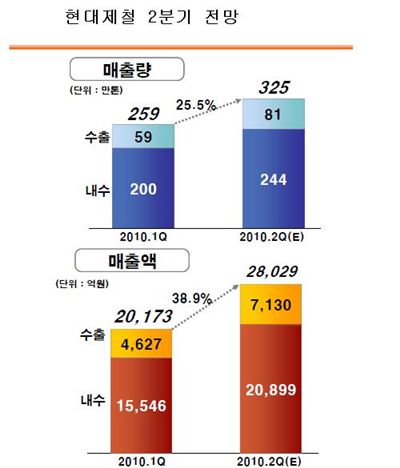 2분기 매출량 325만t, 매출액 2.8조원 전망··전분기比 25.5%, 38.9%↑자동차·조선 생산 증가 및 건축시장 회복 따라 상향 조정