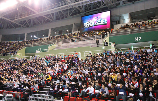 [아시아경제 고재완 기자]지난 24일 7000 석 규모의 인천 산삼월드체육관 주경기장에서 열린 케이블채널 Mnet ‘슈퍼스타K 2’ 인천 지역 2차 예선에서 갖가지 특색있는 응시자들이 모여 관심을 모았다. 약 8000명이 모인 이 날 현장에는 가수가 되고 싶다는 10, 20대 친구들부터 건강을 지키기 위해 노래를 부른다는 어머니, 서툰 한국어에도 오늘을 위해 열심히 한국어 노래를 연습했다는 외국인, 직장 동료들과 멋진 추억을 남겨 보자는 의미에서 오디션에 도전해 본다는 직장인들, 아들을 응원하기 위해 현장을 찾았다는 아버지, 비록 음치이기는 하지만 도전해 보고 싶다는 욕심에 노모를 모시고 나왔다는 우리 이웃들까지 다양한 사람들이 오디션 현장을 찾았다.'슈퍼스타K 2'가 어느새 가수가 되겠다는 일부 특정 사람들의 오디션이라는 의미를 넘어 지역 축제로 자리 잡은 것. 또 가수 ‘슈프림팀’도 직접 인천 현장을 찾아 심사위원으로 참여해 선배 가수로서의 아낌없는 조언을 전하기도 했다.