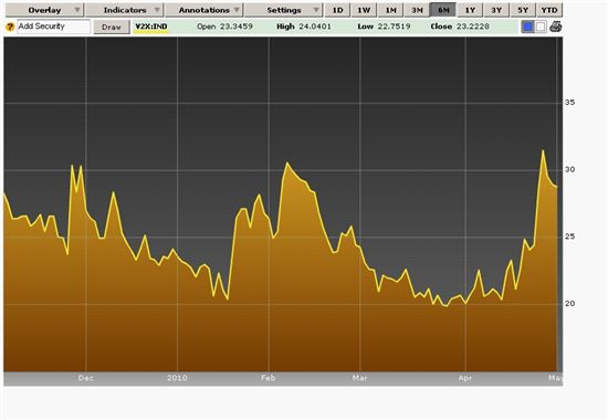 VSTOXX 6개월 추이 [자료 : 블룸버그]