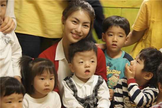 [아시아경제 고재완 기자]기아대책 홍보대사인 배우 김정화가 낯선 세상과의 소통을 시작하는 네 살 꼬마 환희를 만나 사랑을 나누고 왔다. 오는 7일 금요일 방송하는 케이블채널 MBC드라마넷 '휴먼 다큐 해바라기'의 '세 손가락 환희의 첫사랑'편에서 김정화는 대전에 있는 ‘늘 사랑 아동센터’ (042-634-0061)를 찾는다. 그는 그 곳에서 엄마, 이모를 대신해 아이들을 돌봐주고 있는 복지사분들을 돕고, 희귀병을 앓고 있는 꼬마 환희와 즐거운 시간을 나눴다.2007년 대전 어느 경로당 앞에서 쪽지 한 장 없이 발견된 환희는 올해로 네 살이 됐지만 손가락이 모두 붙어 있어 물건을 잘 집지도, 걷지도 못한다. 두개골이 조기에 유합됨으로써 뇌가 자라지 못하는 선천성 희귀병 '애퍼트 증후군'을 앓고 있기 때문이다. 환희는 분당서울대병원에서 두 차례의 큰 수술을 받은 끝에 겨우 양 손만 반으로 갈라놓은 상태이다. 이제야 겨우 세 손가락을 쓸 수 있는 환희는 정상적인 손과 발을 갖기 위해서 그리고 뇌가 자랄 수 있는 공간을 만들어 주기 위해서 앞으로 여러 차례의 수술이 필요한 상황이다.