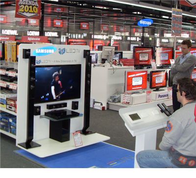 독일 최대 전자양판점인 미디어마트(Media Markt)를 방문한 독일 고객들이 지난 4일부터 시작된 아스트라의 3D 전용 위성방송 채널을 통해 다양한 3D 콘텐츠를 삼성 풀HD 3D LED TV로 실시간으로 보고 있다.