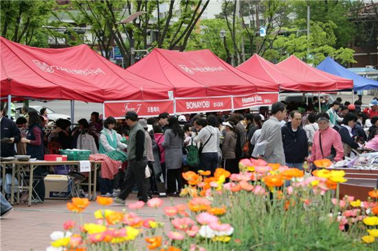 11일 구청 앞 광장서 후드마켓 회원 2000명 지원 위한 바자회 열어