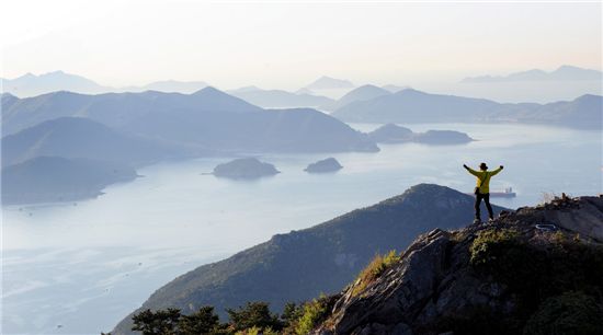 [아시아경제 조용준 기자]"결결이 일어나는 파도/파도 소리만 들리는 여기/귀로 듣다 못해 앞가슴 열어젖히고/부딪혀 보는 바다"(시인 이은상)한려수도에 올망졸망 뿌려진 무수한 섬들 위로 새하얀 물안개가 피어오른다. 물굽이를 따라 섬들이 드나들고 만선의 꿈을 품고 떠나는 어선을 따라 물새들이 힘차게 비상한다.밤새 풍랑으로 거칠게 몸을 뒤척이다가 지친 잠에서 깨어난 통영은 비로서 아침노을에 활기를 찾는다. 그리고 시인이 노래한 것처럼 앞가슴을 열어젖히고 바다와 부딪혀 새로운 삶을 꿈꾼다.계절의 여왕 5월. 가슴이 뻥 뚫리게 만드는 바다가 미치도록 그리울때, 부서지는 파도에 몸을 맡기고 싶을때, 특별한 맛을 느껴보고 싶을때 통영으로 달려보자. # 道- 미륵산 넘어서자 일망무제 무릉도원'야싯골'의 다랑이논이 푸른 하늘을 머금은 오전의 초록빛(위쪽)과 낙조를 담은 저녁의 금빛이 묘한 조화로 환상적인 절경을 만들어내고 있다.