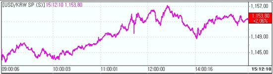[아시아경제 정선영 기자]원·달러 환율이 1150원대에 안착하며 급등세로 장을 마쳤다. 장초반부터 유럽 악재에 민감하게 반응하며 주말 역외환율 상승을 반영하던 원달러 환율은 장중 1157.3원까지 고점을 높이며 상승 압력을 받았다. 유로·달러 환율 하락과 코스피지수 급락, 외국인 대량 주식순매도 등도 원달러 환율을 끌어올렸다. 17일 서울외환시장에서 원·달러 환율은 전일대비 23.3원 급등한 1153.8원에 거래를 마감했다. 시장참가자들은 장초반 코스피 하락과 함께 유로달러 환율이 1.22달러대로 떨어지면서 지난 2006년 4월 이후 최저수준을 기록하자 이내 위험회피 심리를 여실히 드러냈다. 외국인은 코스피에서 무려 7622억원이나 순매도하면서 주식 역송금 수요를 자극했다. 거래양은 서울외국환중개와 한국자금중개 양사를 합쳐 101억5850만달러로 집계됐다. 기준율은 1149.90원. 한 시중은행 외환딜러는 "유로존 불안으로 역외매수가 많이 나왔고 코스피지수가 빠지면서 외국인 주식순매도에 따른 역송금 수요도 계속 들어왔다"며 "1140원대 중반부터 네고물량이 계속 들어오고 롱스탑도 나왔지만 막판에는 재차 상승 분위기를 나타냈다"고 설명했다. 그는 "당분간 환율이 전주 대비 높은 레인지에 거래되면서 대외 뉴스에 따라 변동성이 커질 듯하다"고 말했다. 이날 코스피지수는 전일대비 44.12포인트 급락한 1651.51에 거래를 마감했다. 원달러 스왑포인트도 급락하면서 환율 상승을 지지했다. 원·달러 1개월물 스왑포인트는 0.50원까지 하락했다. 이날 만기일을 맞은 5월만기 달러선물은 23.50원 하락한 11539.원에 마감했고 6월만기 달러선물은 23.50원 오른 1154.50원에 거래를 마쳤다. 오후 3시37분 현재 달러·엔은 92.04엔으로 내리고 있으며 원·엔 재정환율은 100엔당 1252.8엔으로 오르고 있다. 유로·달러는 1.2259달러로 내리고 있다. 정선영 기자 sigumi@<ⓒ세계를 보는 창 경제를 보는 눈, 아시아경제(www.asiae.co.kr) 무단전재 배포금지>정선영 기자 sigumi@<ⓒ아시아 대표 석간 '아시아경제' (www.newsva.co.kr) 무단전재 배포금지>