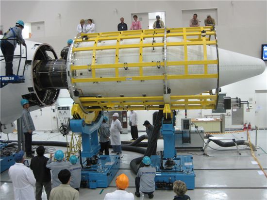 [아시아경제 김수진 기자] 교육과학기술부는 지난 17일 나로호 상단과 1단 총조립에 착수해 19일 전기적, 기계적 체결을 마치고 각종 점검을 준비중이라고 밝혔다. 나로호 상단은 고체 킥모터와 과학기술위성 2호, 페어링 조립을 마쳤으며 지난 24일 각종 탑재센서와 1단과의 연결부위 등에 대한 점검도 끝냈다. 나로호 1단 역시 15일 밀(氣密)시험과 액체엔진 점검, 탑재장비들의 전기시험 등 각종 점검을 마쳤다. 나로호 상단은 나로호 1단과의 전기적 체결을 비롯해 신호 상태 점검, 분리장치 설치 및 상단과 1단 연결 등 기계적 체결을 완료했다. 교과부는 상단과 1단의 각종 연계시험과 전기 점검 등 6월 초까지 발사를 위한 마무리 점검을 끝낼 계획이다. 한편 나로우주센터의 발사대 시스템과 추적·계측·통제장비 등 모든 발사시설들은 이미 성능점검을 모두 마쳤다. 오는 5월 말까지는 발사대와 나로호 1단 관제장비에 대한 연계시험이 이뤄지며 6월 초에는 발사를 위한 최적상태가 유지될 예정이다. 모든 준비과정을 마친 나로호는 발사 이틀 전 발사대에 장착돼 수직으로 기립한다. 이후 발사 하루 전 발사 리허설을 거쳐 연료 및 산화제 주입 등 발사 시나리오에 따라 카운트다운에 들어가게 된다. 김수진 기자 sjkim@<ⓒ세계를 보는 창 경제를 보는 눈, 아시아경제(www.asiae.co.kr) 무단전재 배포금지>